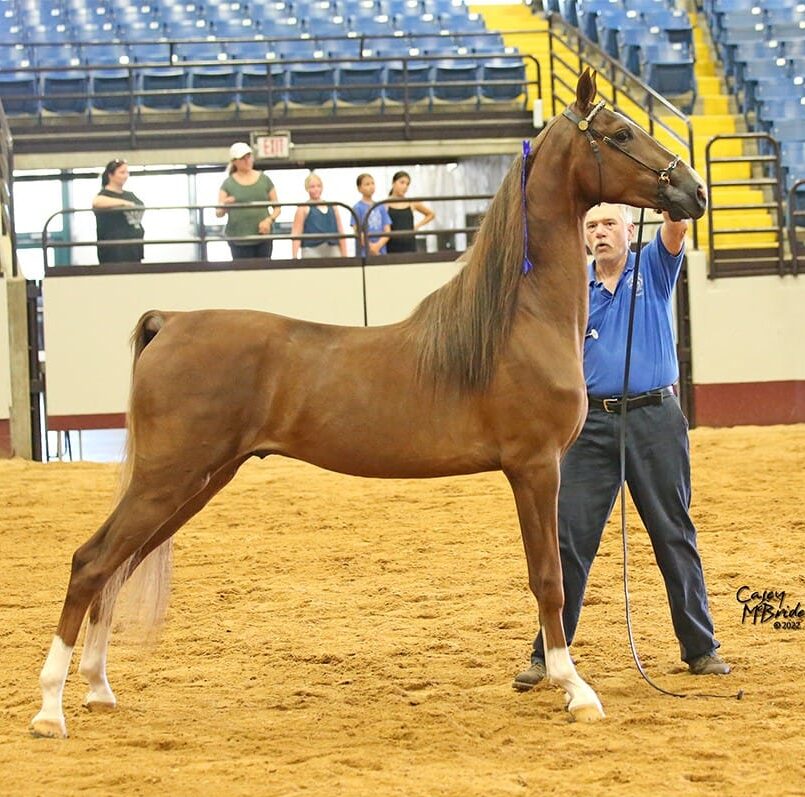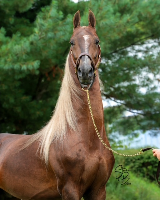 Deeper Shade of Wool was a 2-time winner in the Tennessee Saddlebred Futurity: once as a weanling and again as a 2-year-old. He is a full brother to Miss Moira Rose (RWC). He has Yorktown (WGC, WC) on the top and Will Shriver (WGC, WC, RWC) on the bottom, along with many other champions. To date he has been lightly bred, with only 3 up and coming get. Here is your chance to get in on the beginning of something special.